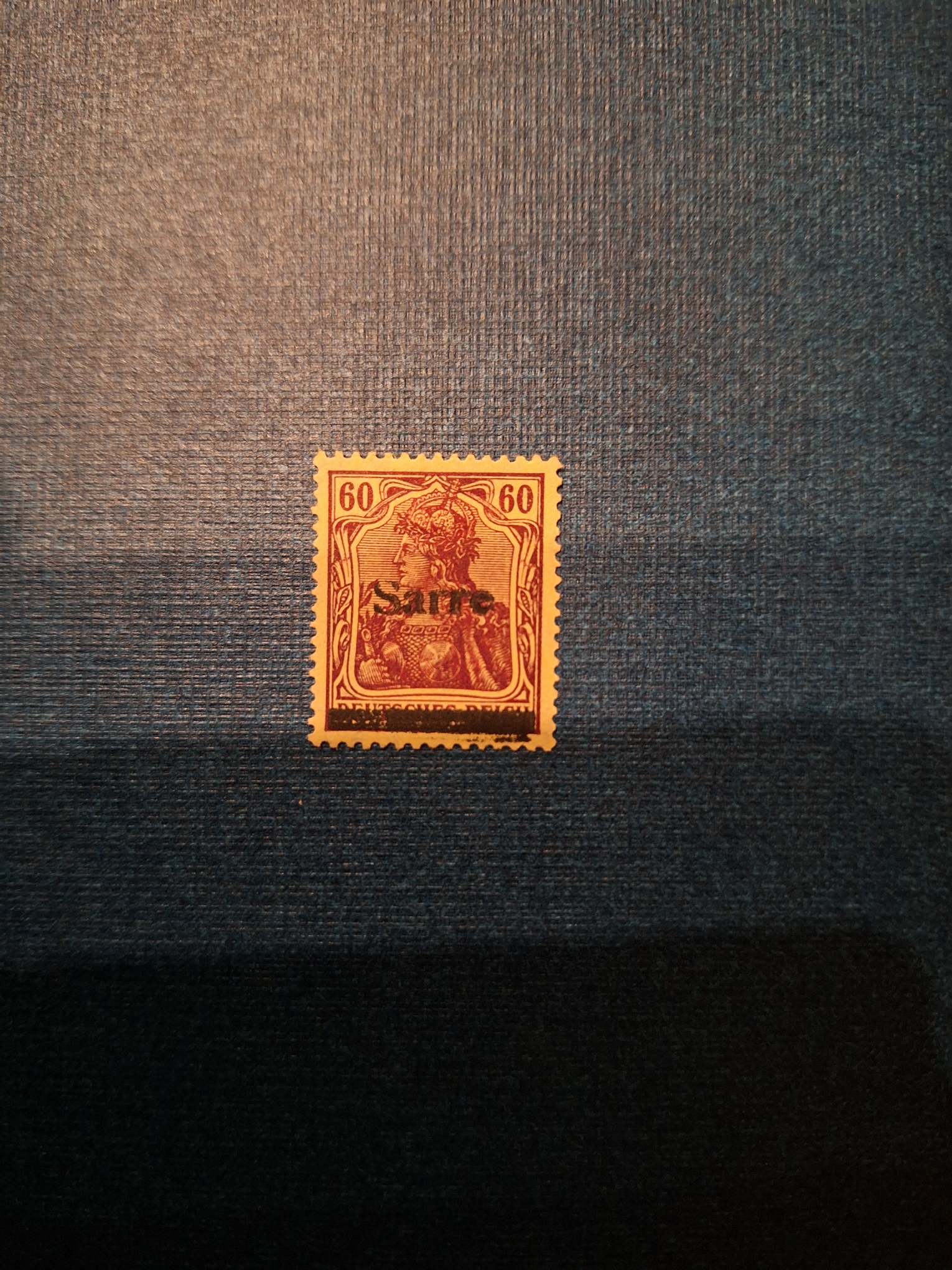 Halo zusammen habe auf der Rückseite einer Germania Marke mit Sarre Aufdruck folgenden Stempel auf der Rückseite entdeckt: