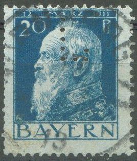 Ich habe hier ein Briefmarke von Bayern 1911 mit Lochung. Da es ein spezielen Notiz zu die Lochung gab, frage ich mir ab ob das speziell ist? Gibt es mehrere Bayern Briefmarke mit Lochung?