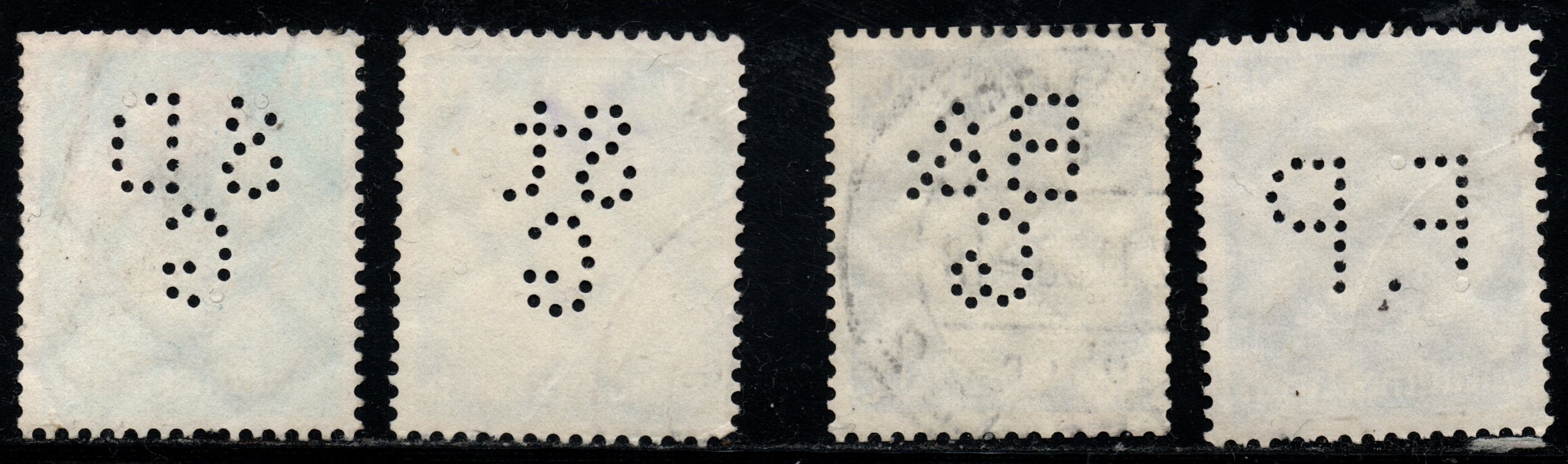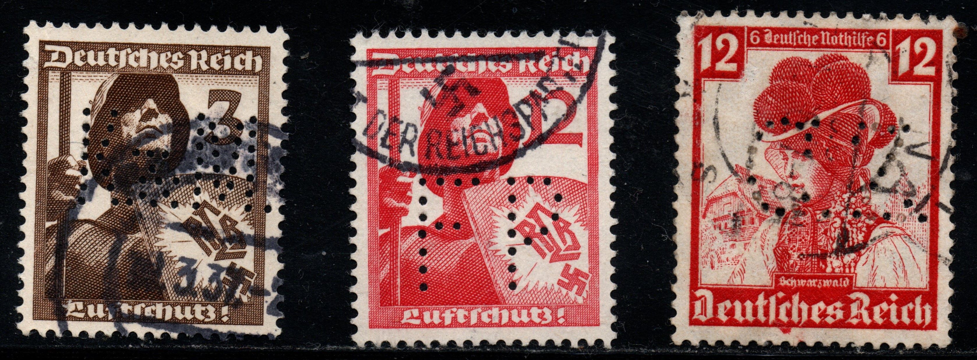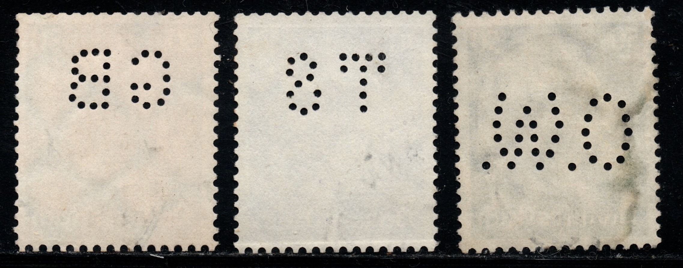 heute kommen die letzten drei Perfins auf Marken der Hindenburgausgabe: