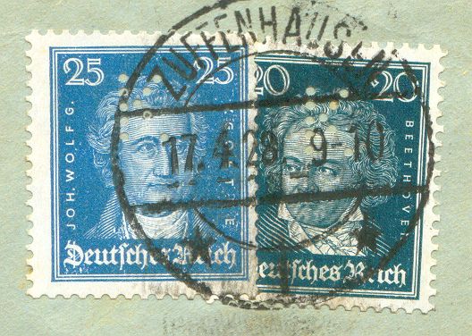 Österreichische Lochung in Briefmarken des Deutschen Reichs.