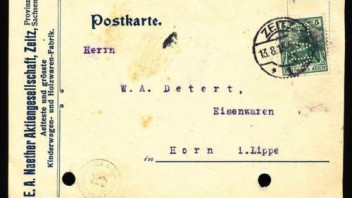 Ich zeig hier eine Postkarte mit Mi. 89 und der Perfin "EAN" gestempelt Zeitz 18.8.1920
