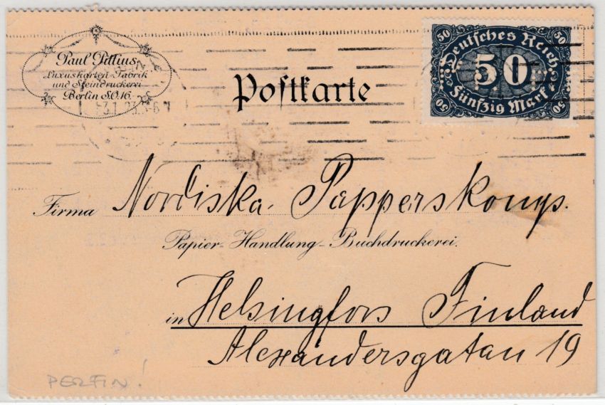Ich kann dir sagen P. P. ist "Paul Pittius Luxuskarten-Fabrik und Steindruckerei"