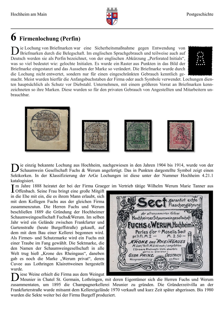 Die 021-4-01-02 ist ebenso aufgeführt, hier wurde die Lochung von "Meunier & Co. „Premier“ Filiale Hochheim", verwendet. Dürfte aber ziemlich sicher auch über Fuchs & Werum gelaufen sein.