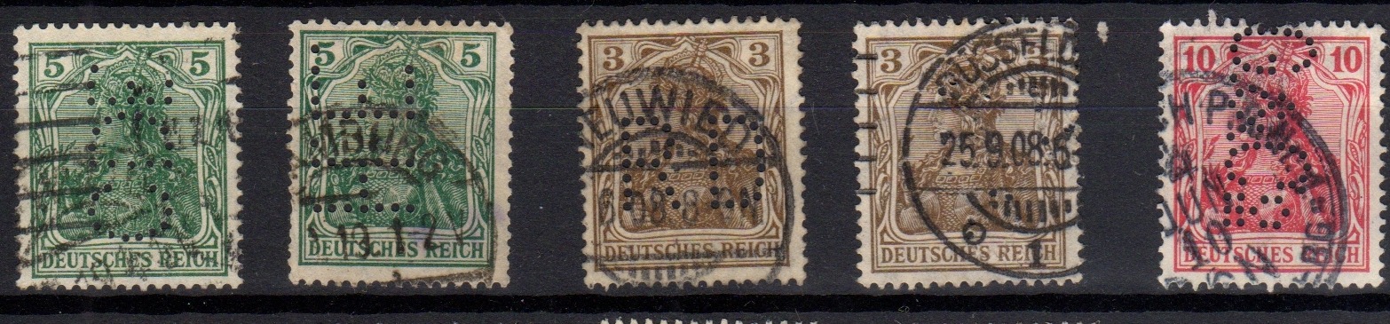 • Perfin Deutsches Reich, Germania VIII-Ausgabe II, Vorderseiten.jpg