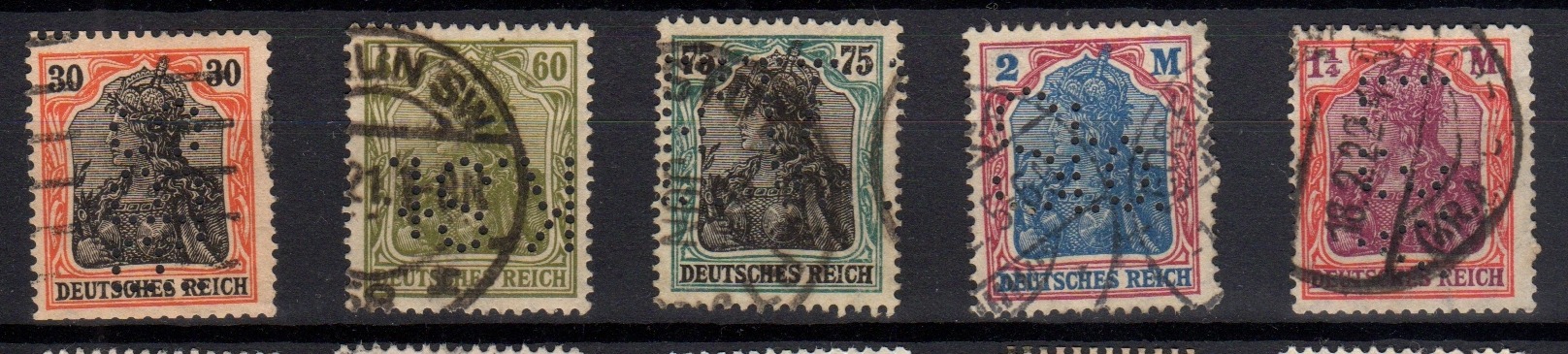 • Perfin Deutsches Reich, Germania VIII-Ausgabe II, Vorderseiten.jpg