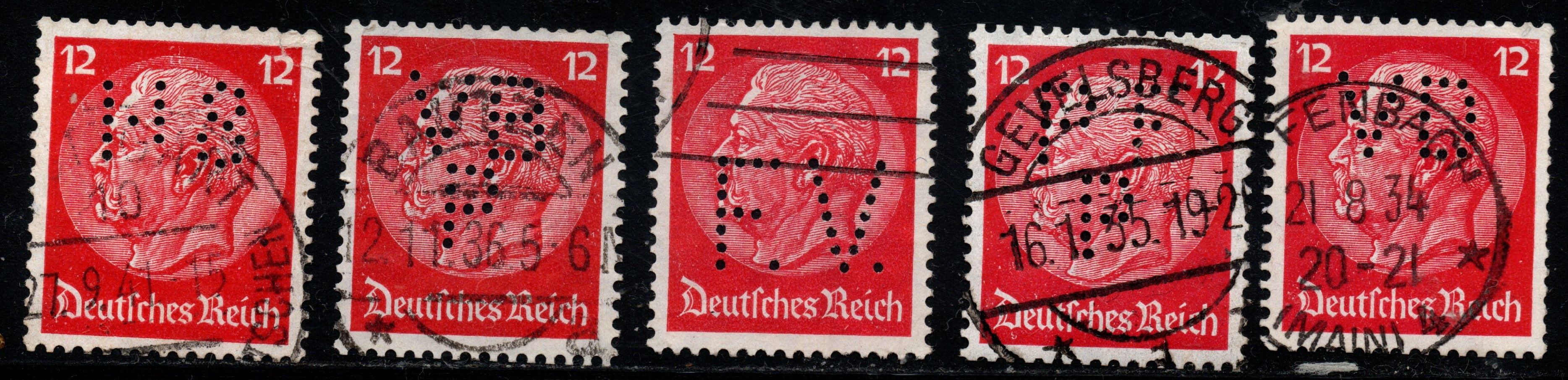 • Perfin Deutsches Reich, 12 Pfg. Hindenburgausgabe, Vorderseiten.jpg