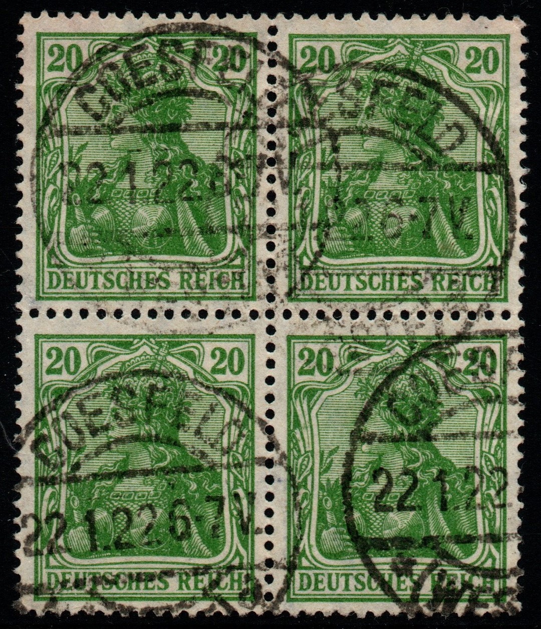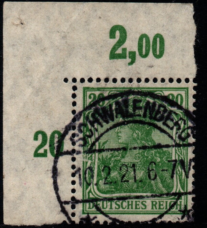 ich denke, es ist an der Zeit mit meinen Germanias weiterzumachen. Im Spätsommer 1920 kamen neue 20 Pfg. Marken der Germania-VIII Ausgabe an die Postschalter. Die Marken wurden in verschiedenen Grüntönen gedruckt. Der Michel unterscheidet drei Farbfamilien. Diese werden auch von erron in der PHILA-DB präsentiert: http://www.philadb.com/?site=list&catid=&catuid=484&id=765