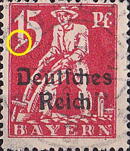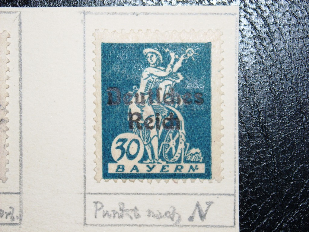 Hier mal ein paar Marken der Abschiedsserie von Bayern mit Überdruck Deutsches Reich mit markanten und nicht so markanten Druckzufälligkeiten.