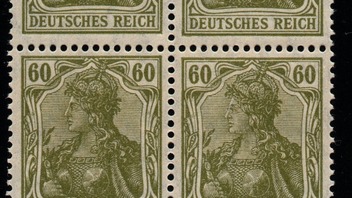 Dafür kann ich eine der fünf katalogisierten HAN im postfrischen Viererblock präsentieren. Gestempelt zeige ich zwei Marken mit unterschiedlichen Farbtönen. Diese wie immer inflageprüft Bechthold.