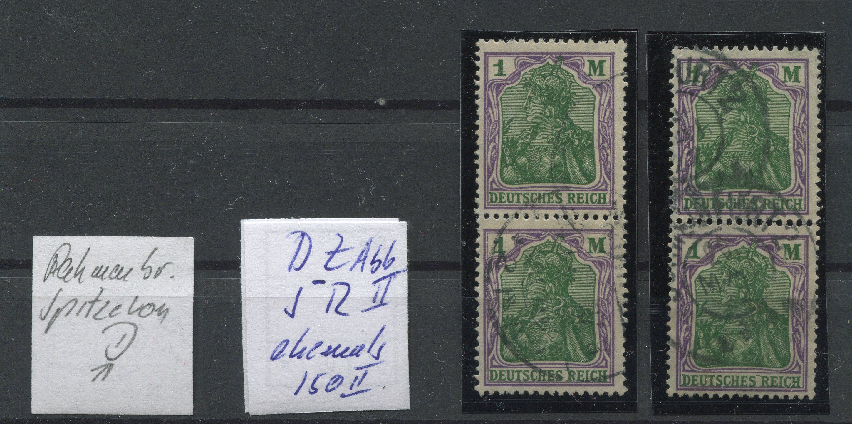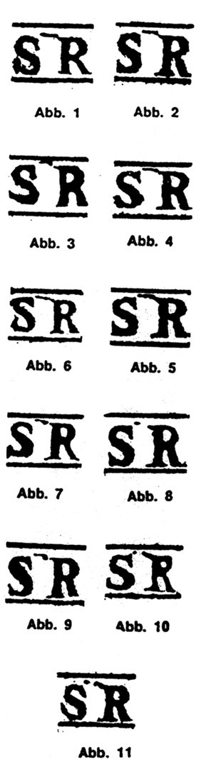 Ich habe hier auch noch ein Album mit Germanias herumliegen. Es sind Reste von verschiedenen Ankäufen. Ein Sammler hatte einen Zettel mit einem Hinweis zu einem grünen Strich zwische "S" und "R" sowie teilweise einer spitzen rechten "M"- Serife und/ oder eines abgeschrägten "1" Kopfes. Habe die Bestände mal gesichtet und die eine oder andere Marke gefunden.