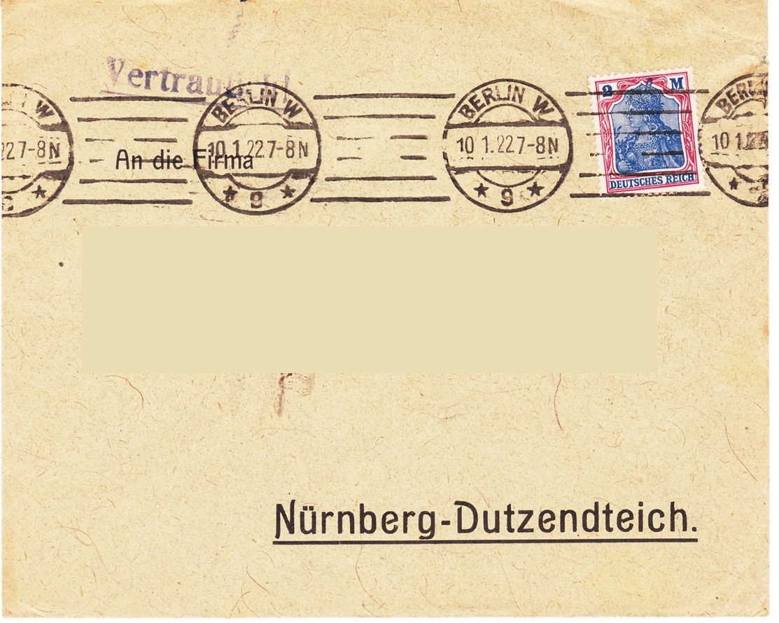 das ging wirklich superschnell. Eben gerade brachte der Briefträger die gestern angekündigte Einzelfrankatur der 2 Mk. Germania VIII-Ausgabe auf Inlandsbrief aus Eisenach nach Bünde, Westfalen vom 14.5.22, also PP7.