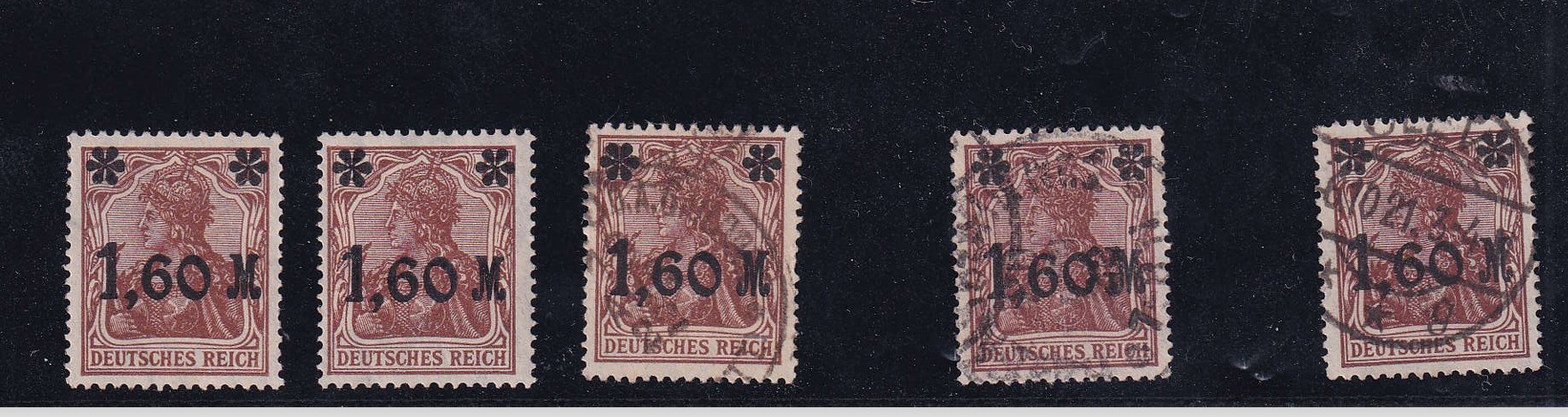 Germania-Marken der Inflazeit, Überdruck-Ausgabe Germania (IX), 1921, Mi. Nr. 154 - 157