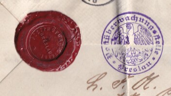 Auf der Rückseite wurde er von der Postprüfungsstelle Breslau mit zwei Siegeln und einem Stempel verschlossen.