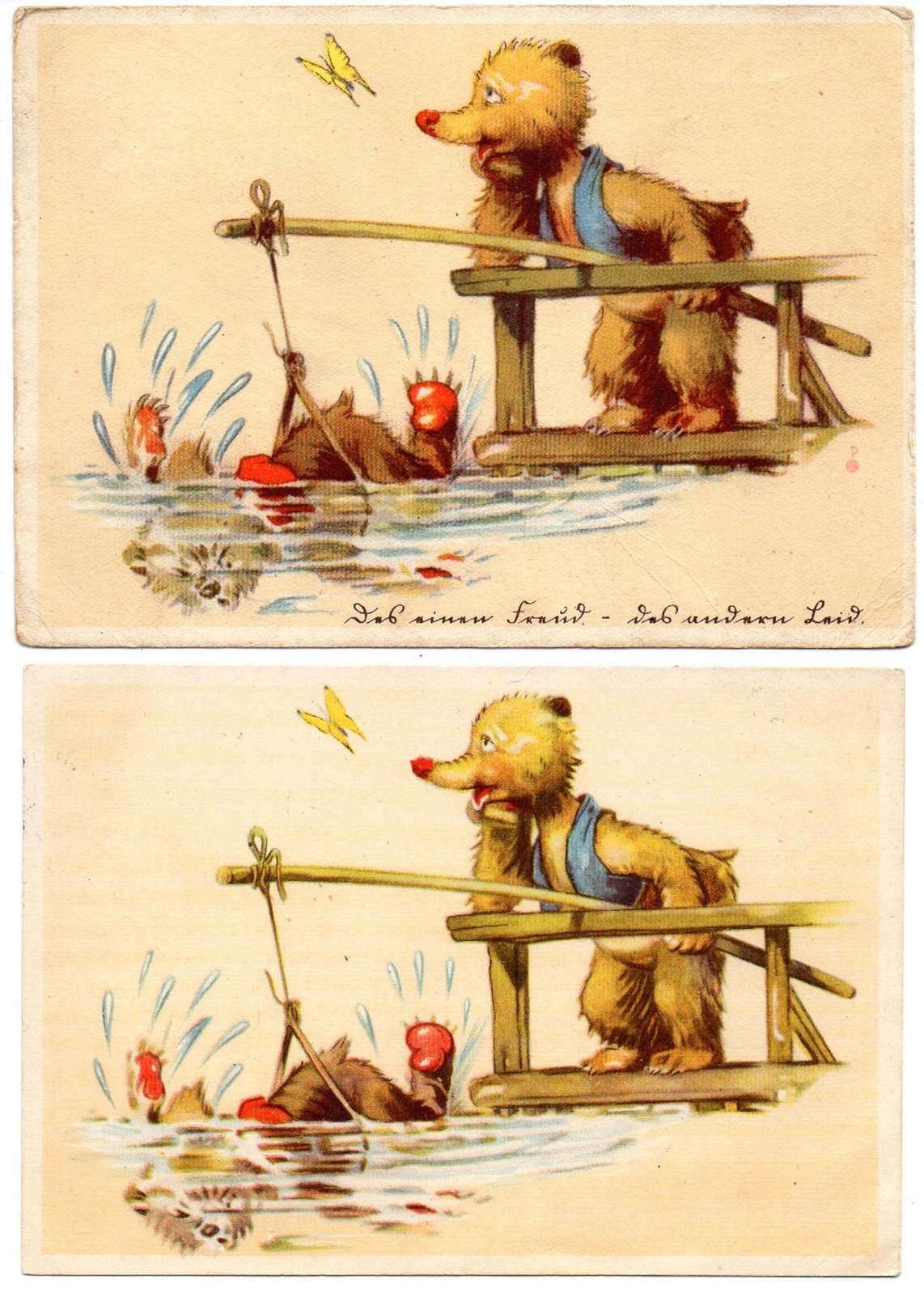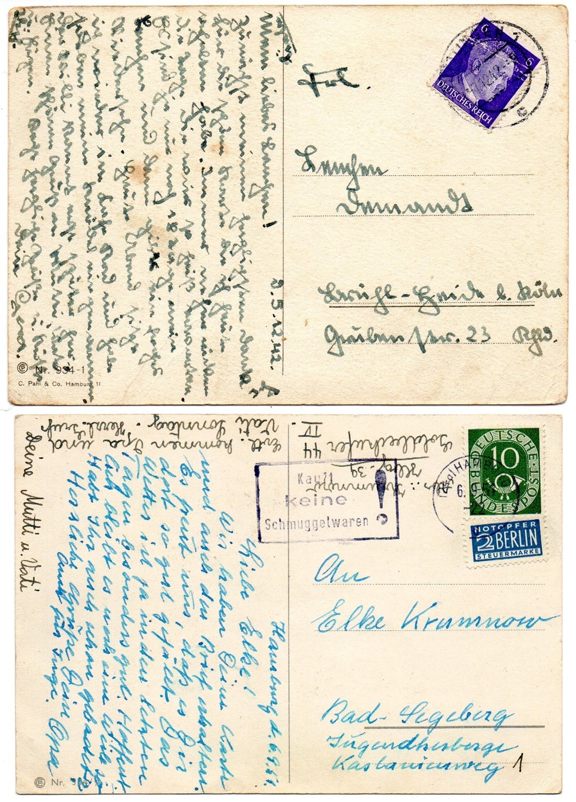 27. Juni 2024 um 14:18 #1 Hallo,Bei einer AK-Serie von 5 Stück, befinden sich 2 PK mit gleichem Motiv. Die eine wurde am 7.12.42 gestempelt, die andere am 6.9.51.Fand ich irgendwie lustig und interessant.Zeige euch auch dazu die anderen 3 PK. die anderen 3 PK