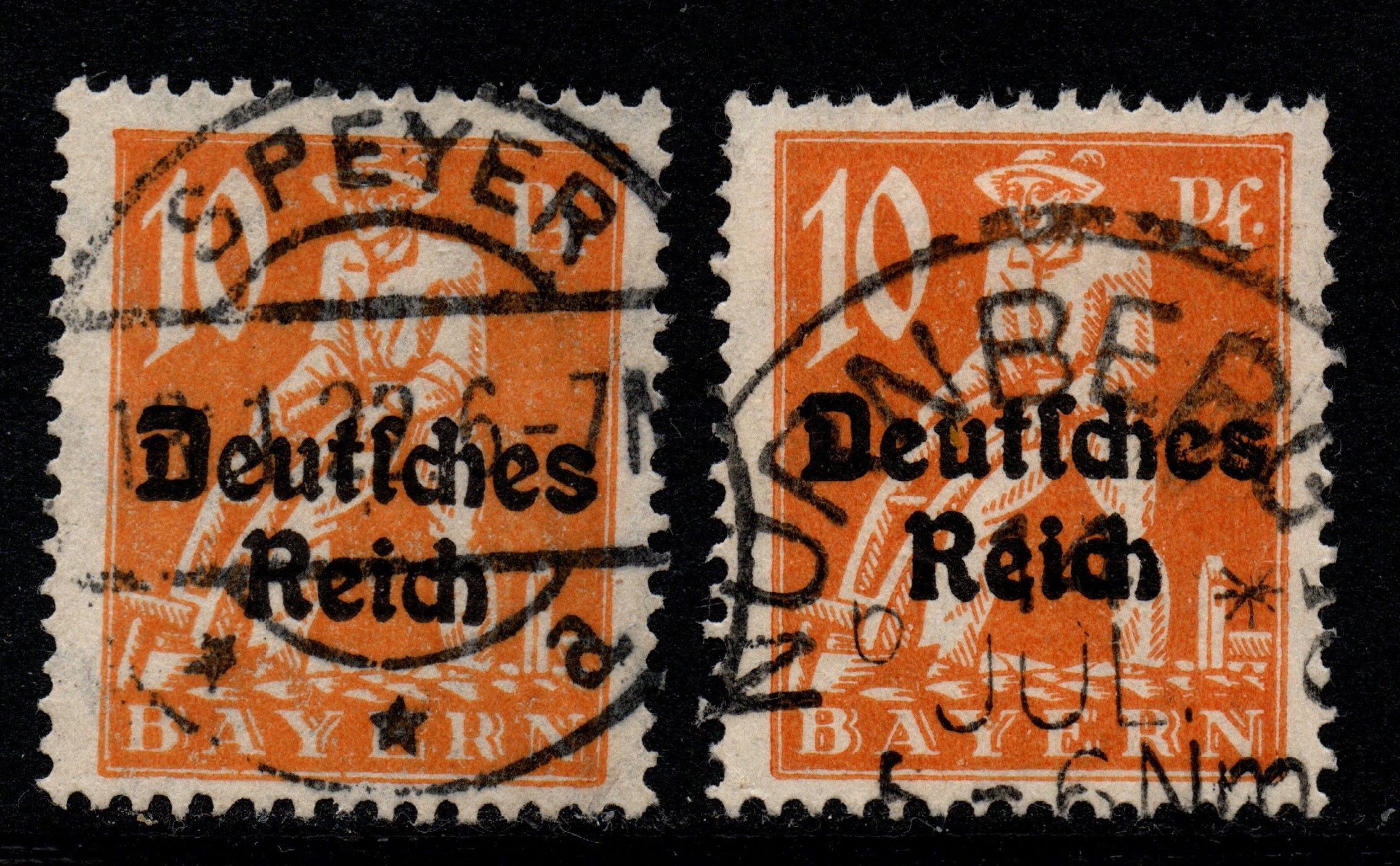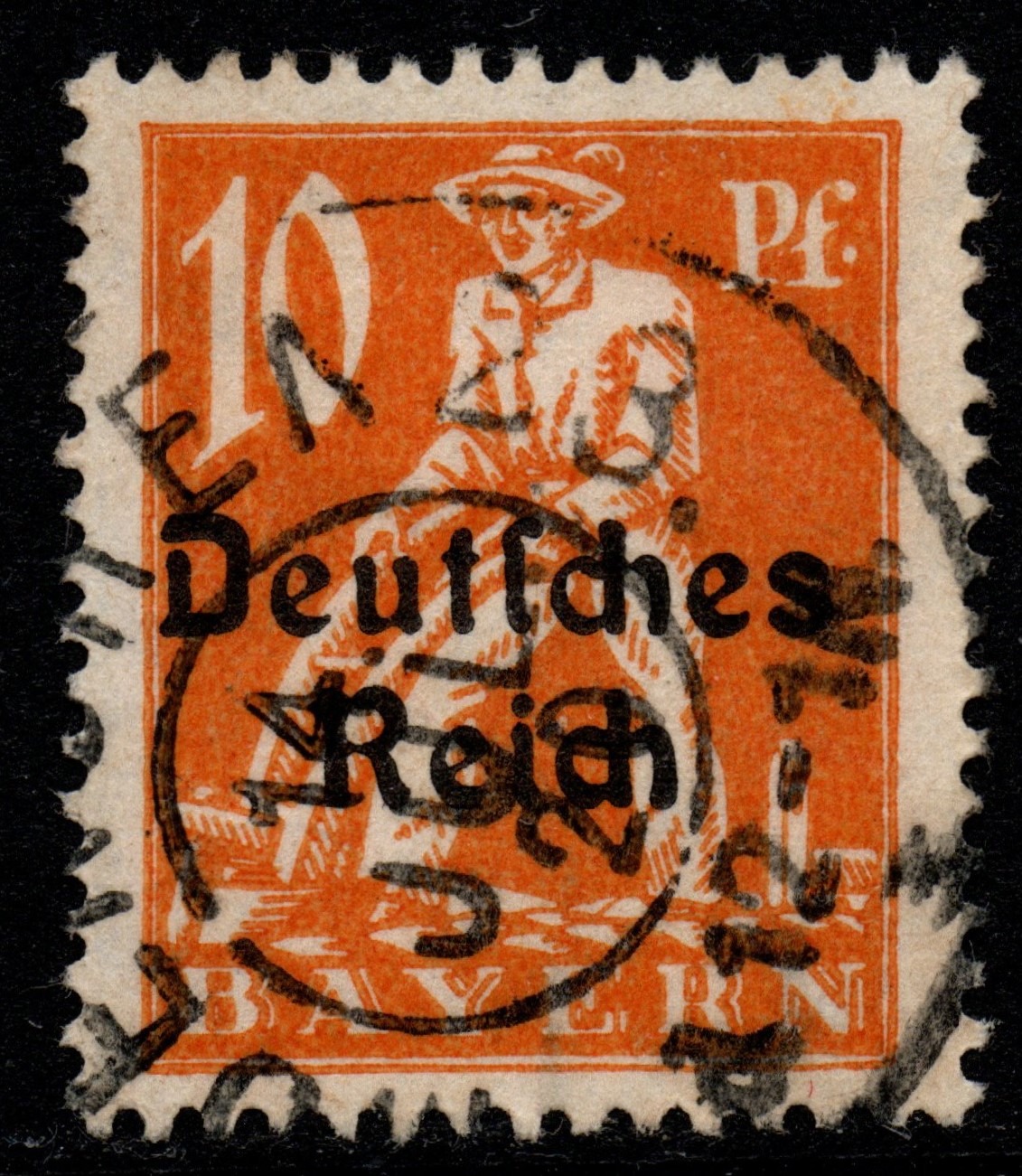 weiter gehts mit der Bayern Abschied-Überdruckausgabe, heute der 10 Pfg. Wert. Im Gegensatz zum Michel-Spezial der generell den 6. April 1920 als Erstausgabetag nennt, schreibt erron in der PHILA-DB bei der 10 Pfg. Marke den 10.04.1920 als Datum der frühesten Verwendung (FD). Ebenfalls im Gegensatz zum Michel-Spezial der zur Bayern Abschied Überdruckausgabe schreibt: Auflagen unbekannt nennt erron in der PHILA-DB eine Auflage von über 13 Mio Marken. http://www.philadb.com/?site=list&catid=&catuid=484&id=767