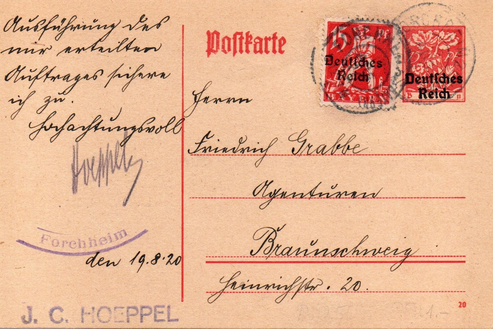 heute beginne ich mit der 15 Pfg. Marke der Bayern-Abschied Überdruckausgabe. Bei diesem Wert werten die unterschiedlichsten Frühdaten genannt. erron nennt in der PHILA-DB den 16.4.1920, der Michel-Spezial nennt generell den 6.4. 1920 als Erstausgabetag und Bechthold und Oechsner den 8.4.1920 als Frühdatum.