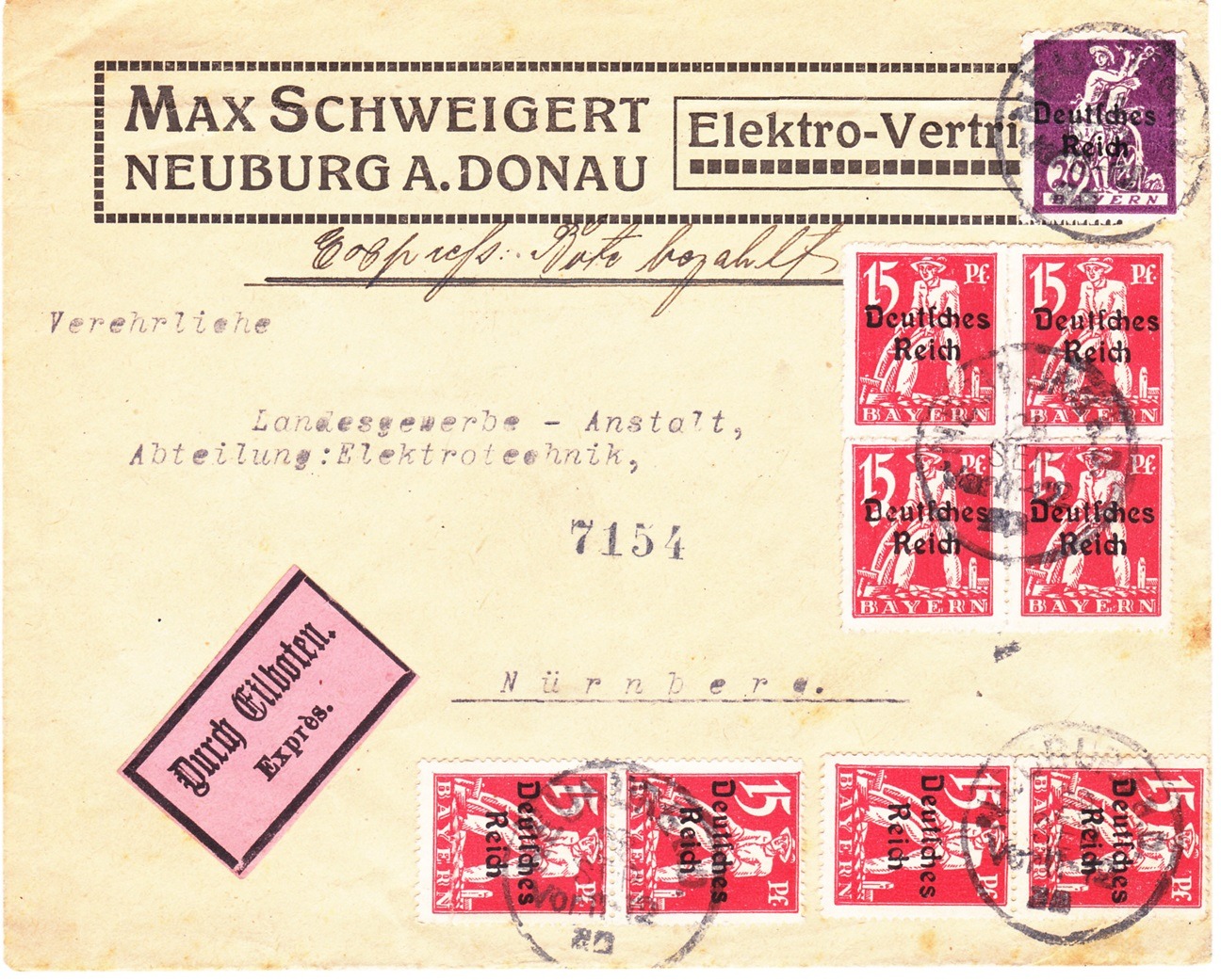 heute beginne ich mit der 15 Pfg. Marke der Bayern-Abschied Überdruckausgabe. Bei diesem Wert werten die unterschiedlichsten Frühdaten genannt. erron nennt in der PHILA-DB den 16.4.1920, der Michel-Spezial nennt generell den 6.4. 1920 als Erstausgabetag und Bechthold und Oechsner den 8.4.1920 als Frühdatum.