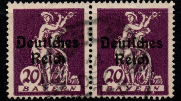 Mein Beleg hingegen ist sehr häufig, ein Paar der 20 Pfg. Marke auf Inlandsbrief aus Neunkirchen am Brand (LKr. Forchheim) nach München vom 17.11.20, also PP5.