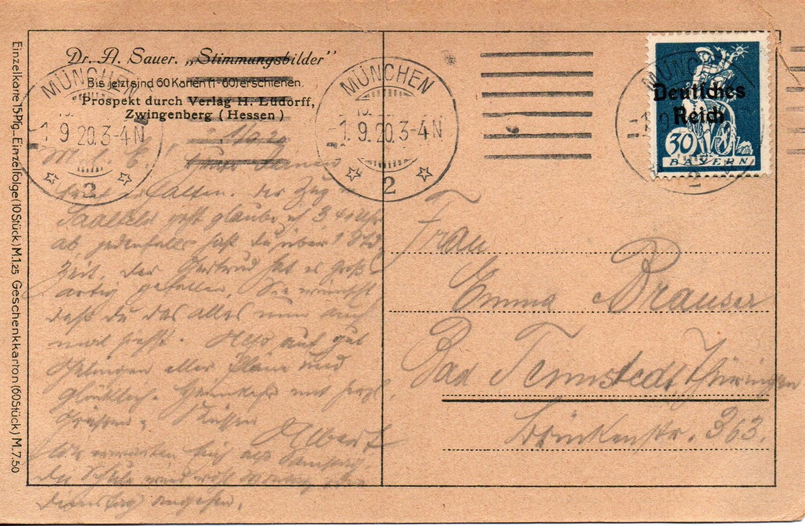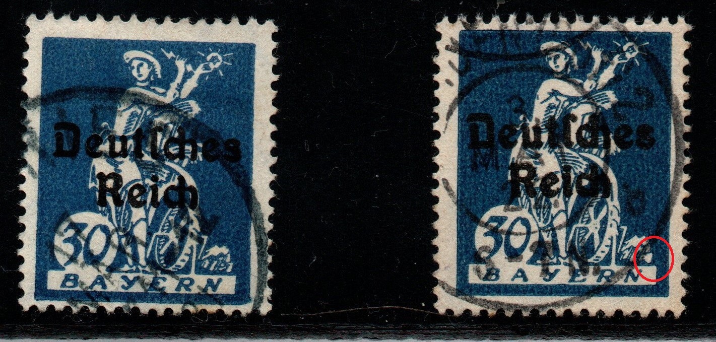 weiter geht es mit dem 30 Pfg. Wert der Bayern Abschied Überdruck-Ausgabe. Auch hier schreibt der Michel-Spezial das der Erstausgabetag der 6. April 1920 war. Dem widersprechen aber Bechthold und Oechsner Im Handbuch und erron in der PHILA-DB. Beide Quellen nennen den 4.4.1920 als FD. Zur Auflagenhöhe heisst es in der PHILA-DB: über 33 Mio Marken: http://www.philadb.com/?site=list&catid=&catuid=484&id=491