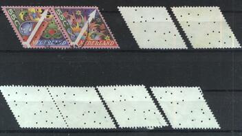 Mi-Nr. 1496-97, die so genannten Dezembermarken, wurden zusammenhängend im Bogen zu 20 Marken und 1 Zierfeld in Anordnung eines stilisierten Weihnachtsbaumes gedruckt. Der Bogen wurde von der Post nur unzertrennt abgegeben. Die Marken weisen mehrere, unregelmäßig angeordnete Lochungen auf.