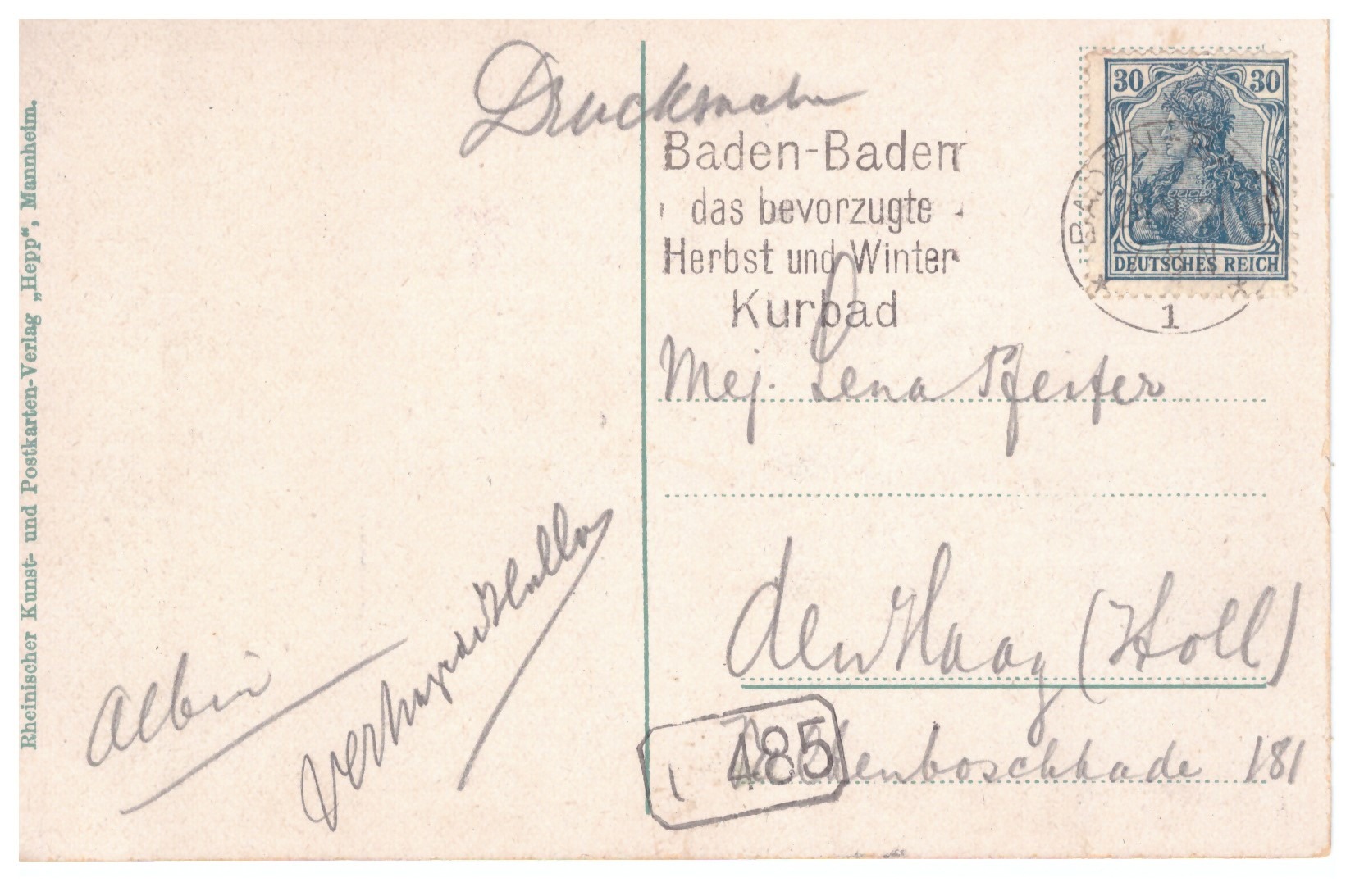 Auch auf der Vorderseite der Postkarte finden sich noch Informationen: