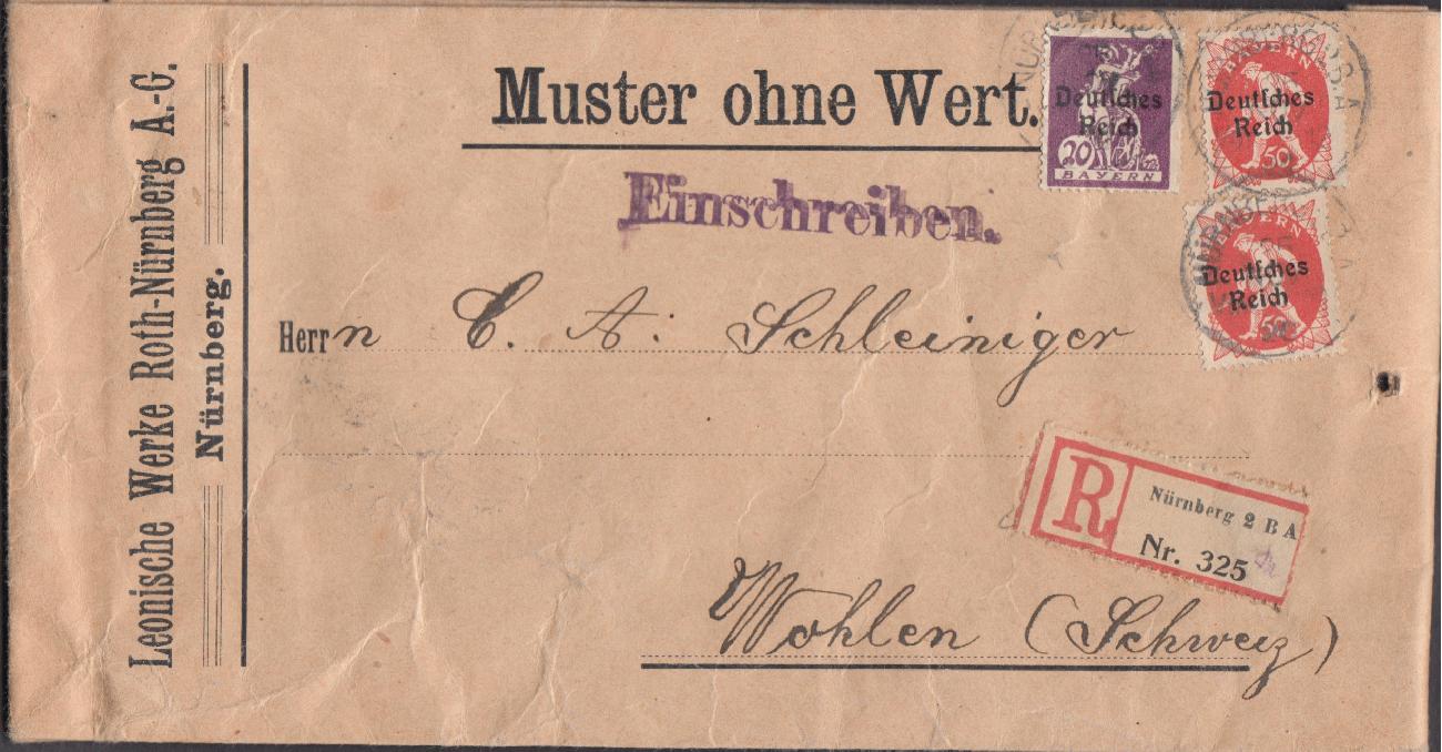 Versendet von Nürnberg am 25 November 1920 nach Wahlen in die Schweiz.