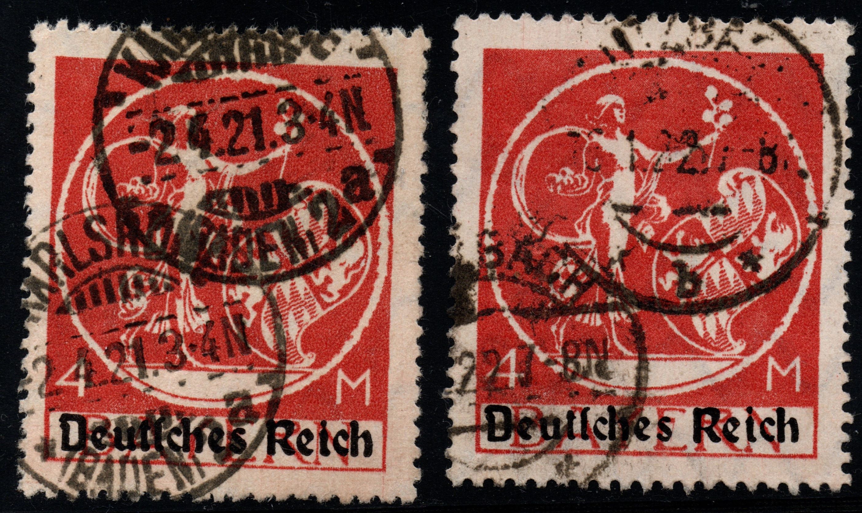 Wie schon gesagt, all das habe ich nicht. Ich zeige zwei inflageprüfte und typbestimmte Marken mit leicht unterschiedlichen Farbtönen wobei die Unterschiede bei Tageslicht größer sind wie auf dem Scan. Außerdem wieder ein Beispiel für einen Falschstempel aus meinem "Giftalbum" Der Stempel "Regensburg 1" ist auch in der 1. Auflage des Band 13 der Infla-Bücherei verzeichnet.