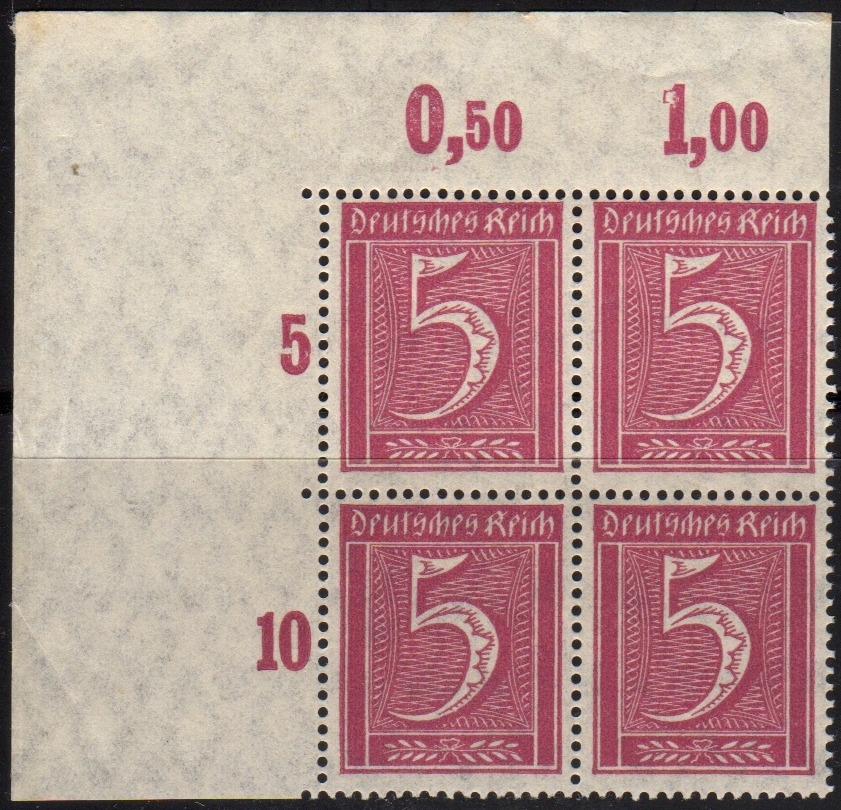 Bei der "republikanischen" Markenausgabe mit Wz.1 hatte ich die Gelegenheit früher mal recht viele postfrische Oberrandstücke sowie postfrische Paare mit HAN-Nummern zu ergattern. So etwas sammel ich dann auch postfrisch. Die sind natürlich nicht infla-geprüft.