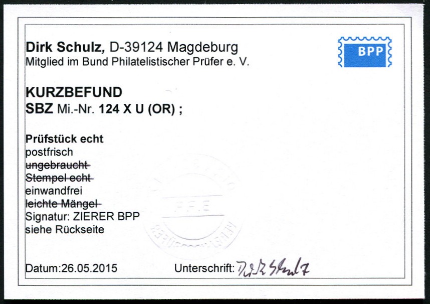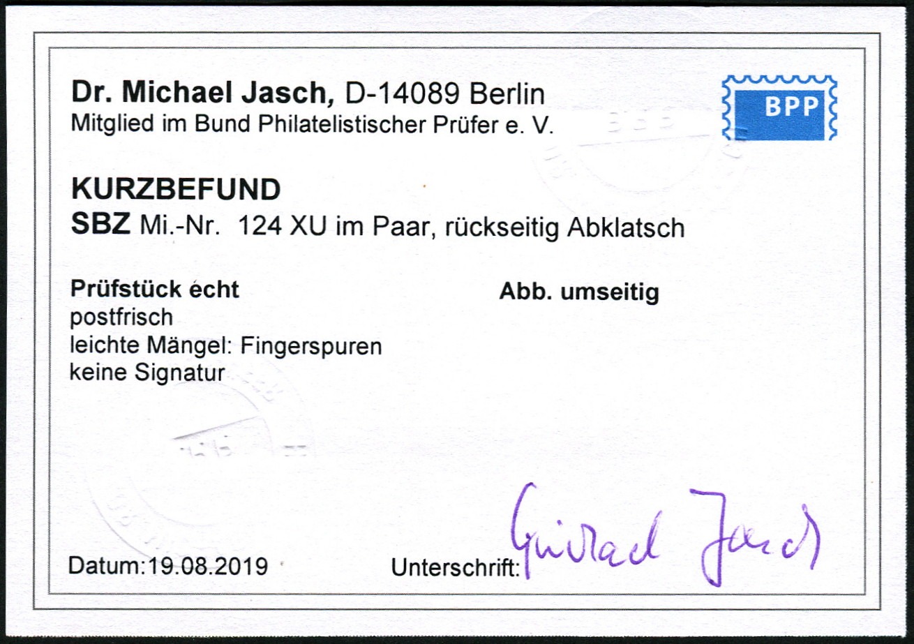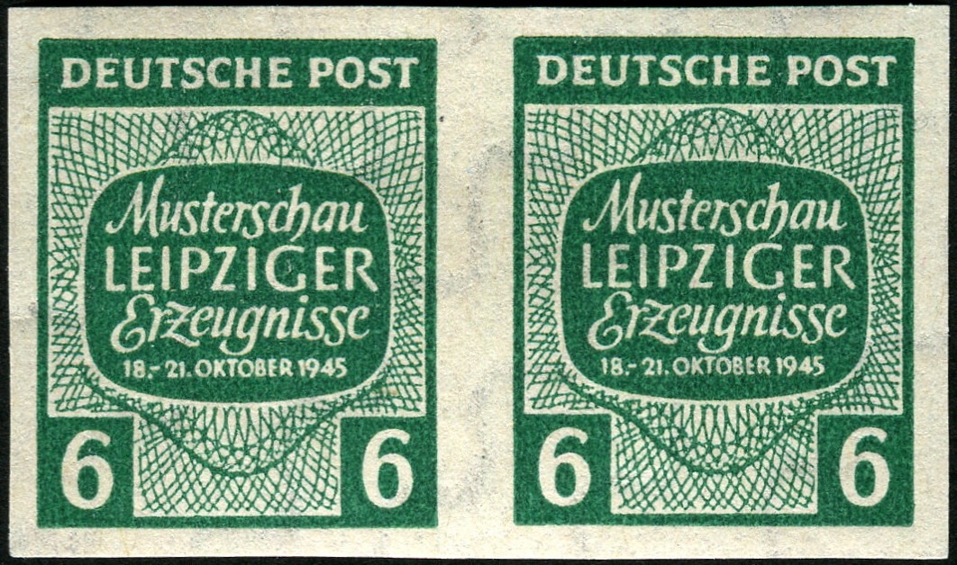 18. Oktober 2024 um 19:55 #1 18.10.1945 Sonderausgabe zur Musterschau Leipziger Erzeugnisse, Wertstufe 6 Rpf mit Wasserzeichen steil fallende Stufen, Nr. 124 X, postfrischer Wert