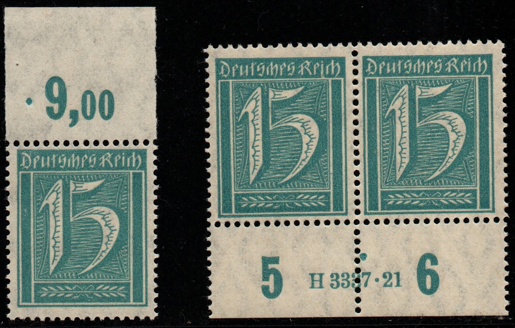 Außerdem kann ich eine postfrische Marke vom Oberrand zeigen. Die 15 Pfg. Marke gibt es nur als Plattendruck, Außerdem die einzige katalogisierte HAN: H3337.21. Ebenfalls postfrisch und wie alle meine postfrischen Exemplare ungeprüft.