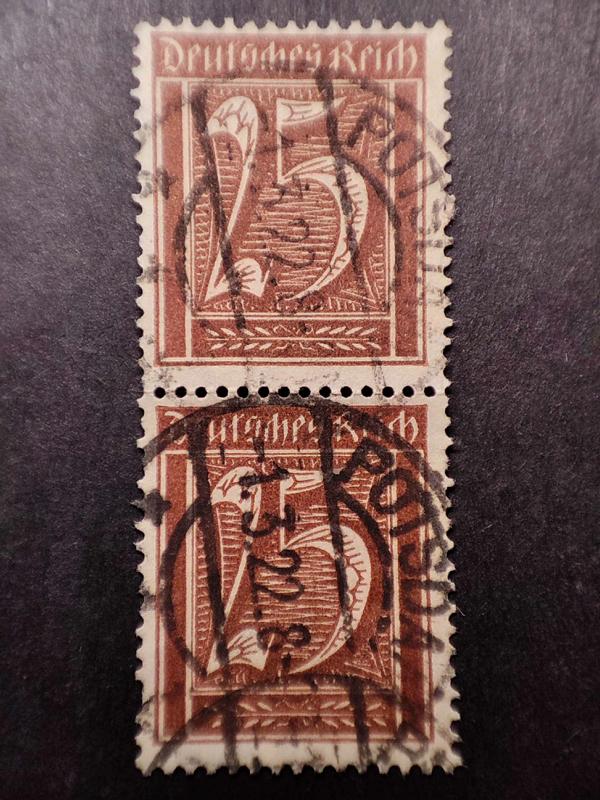 Ein senkrechtes Paar, gestempelt - Potsdam 1.3.22 8-9 Uhr (ich vermute Rollenmarken mit relativ guter Zentrierung!