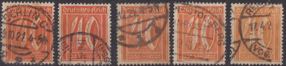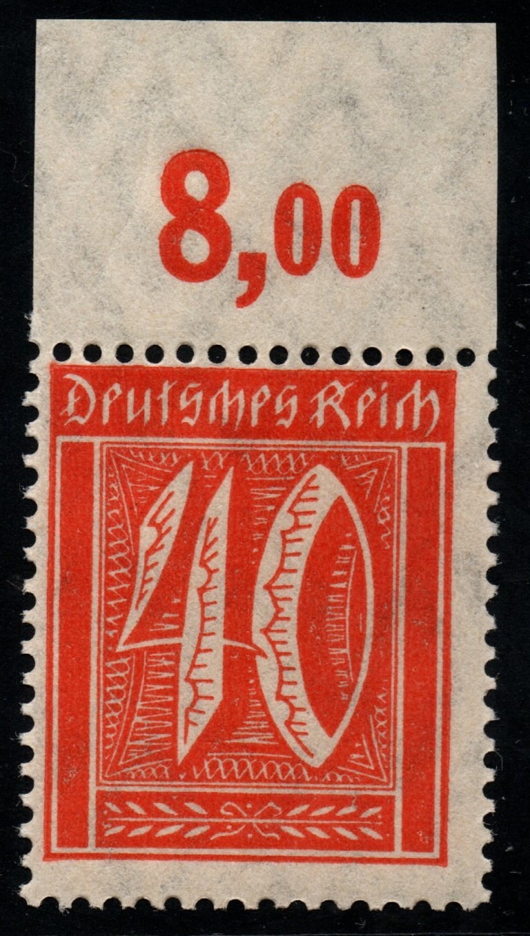 wie bei allen anderen Marken der Ziffernausgabe Wz. 1 Rauten sind die Frühverwendungsdaten nicht erforscht bzw. die Vergleichssammlungen der Prüfer nicht ausgewertet. Sowohl der Michel-Spezial 2016 als auch die PHILA-DB nennen den August 1921 als früheste bekannte Verwendung. Produziert wurden die Marken sowohl im Platten- als auch im Walzendruck. Es wurden Bögen und Rollen hergestellt. Die Auflagenhöhe ist nicht bekannt: http://www.philadb.com/?site=list&catid=&catuid=484&id=876