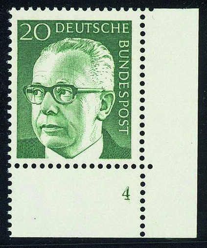 20 Pfg. Heinemann, rechte untere Bogenecke mit äusserst seltener Formnummer "4", ungefaltet, tadellos postfr., ohne jegliche Signaturen. Es sind nur ...