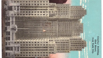 Postkarte von New York nach Freiburg im Breisgau. Der Maschinenstempel "Friedrichshafen Bodensee Luftpost" auf der Bildseite trägt das Datum 10.8.1929.