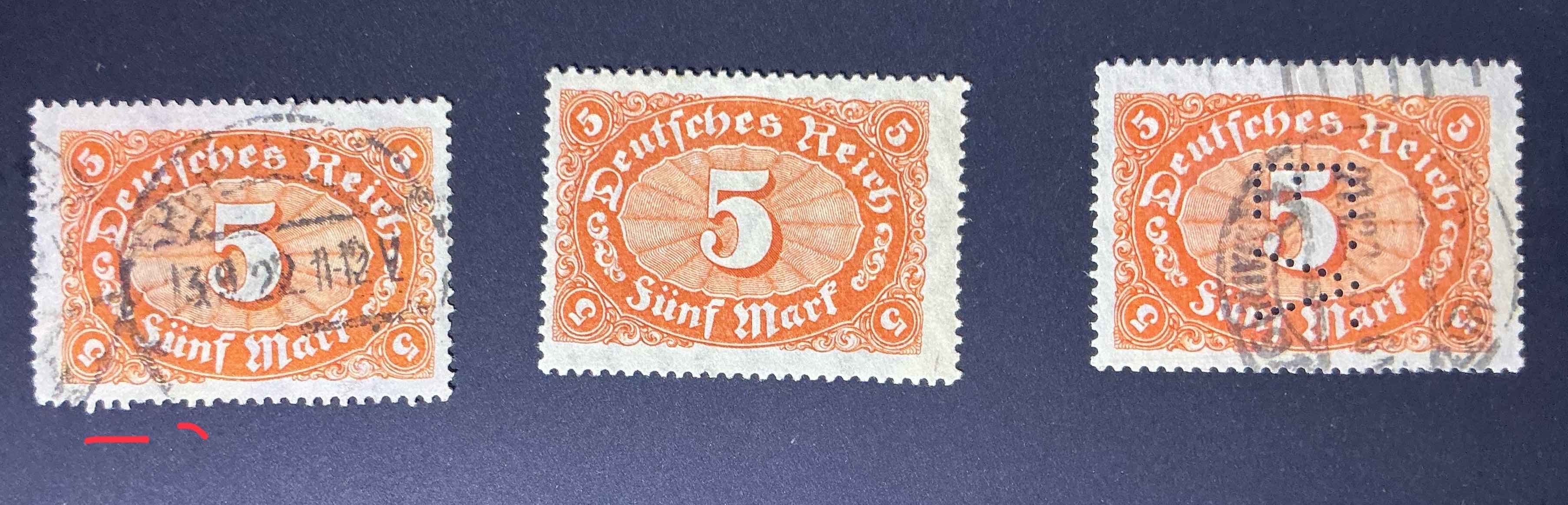 Das ist eine 174, die anderen sind 194. Dazu ein Perfin. Hast du gar keinen Katalog ?