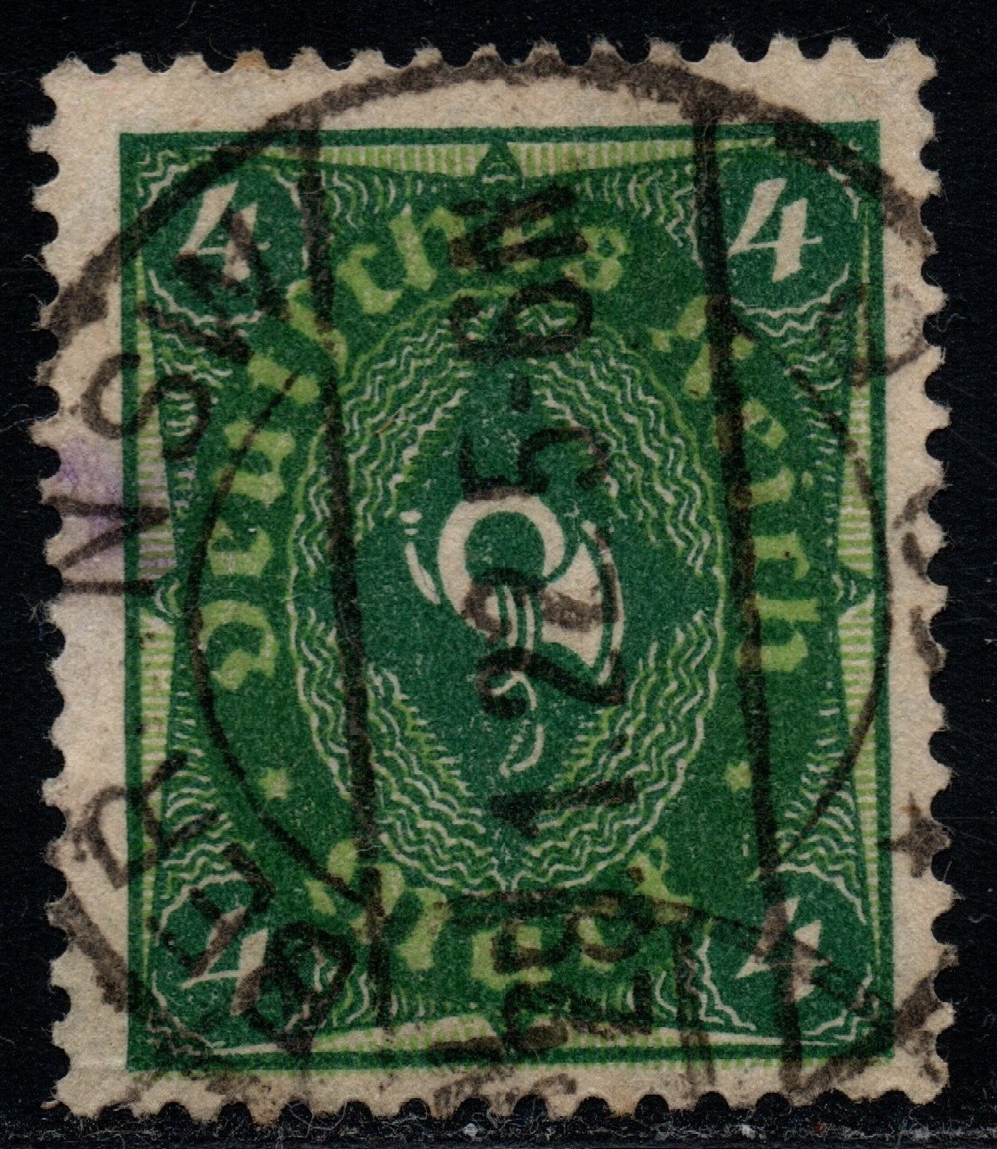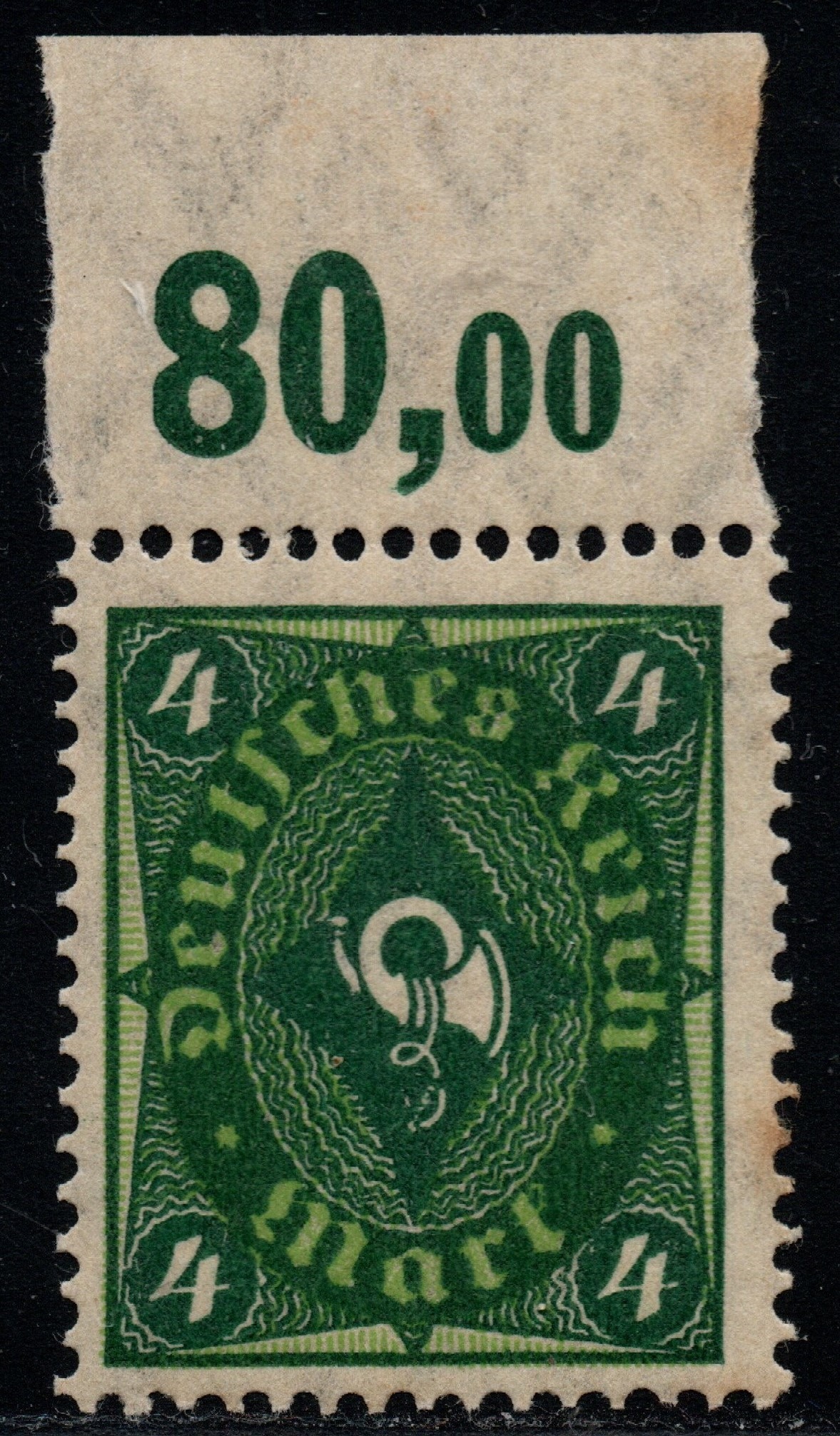 Ich beginne heute mit dem 4 Mark Wert der Posthornausgabe Wz.1 Rauten. Aus dem was das Kohl Handbuch zu der Ausgabe schreibt nehme ich an, dass diese Marke wie schon der 2 Mark Wert, kurz vor Weihnachten 1921 an die Postschalter kam. Michel Spezial 2016 und die PHILA-DB schreiben übereinstimmend Dezember 1921. Die Marke wurde ausschließlich im Plattendruck und in Bögen produziert. Im Michel Spezial werden zwei HAN katalogisiert: H 5994.21 und H 5443.22. Ich gehe also davon aus, das zwei Auflagen hergestellt wurden. Die Auflagenhöhe ist nicht bekannt. https://www.philadb.com/?site=list&catid=&catuid=484&id=527