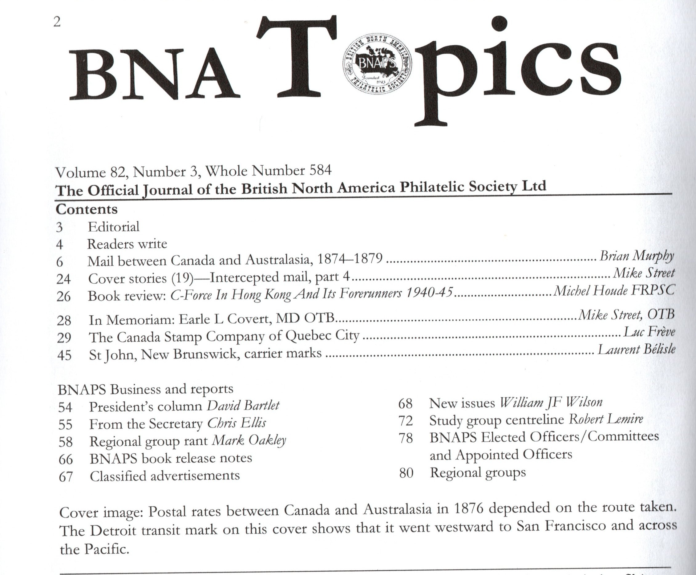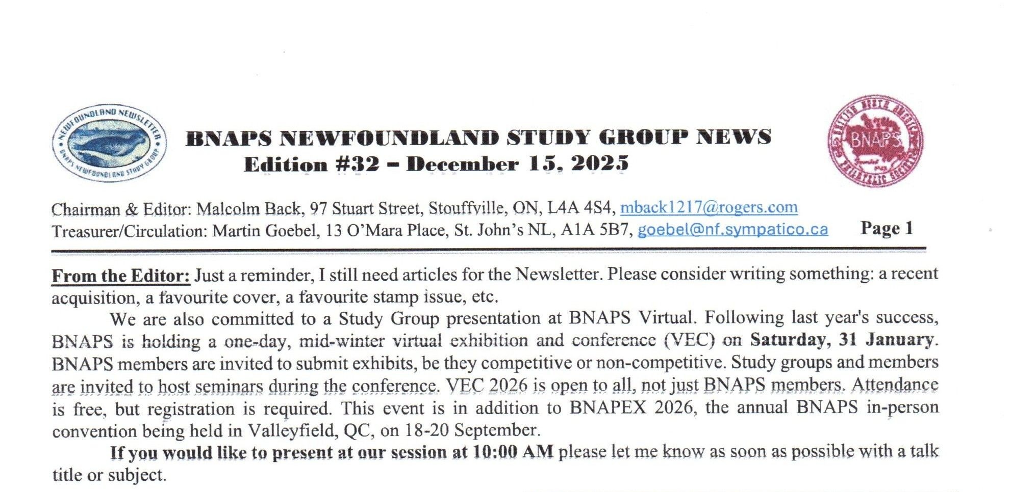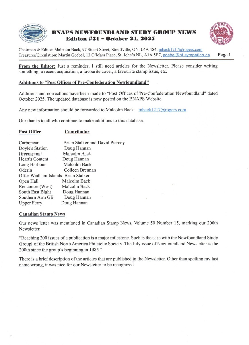 ich bin ja nicht nur in Deutschland Mitglied mehrerer Arbeits- und Forschungsgemeinschaften sondern auch in Canada Mitglied der BNAPS und der Newfoundland Study Group. Beide bringen vierteljährlich die BNA Topics und das Newfoundland Newsletter heraus.