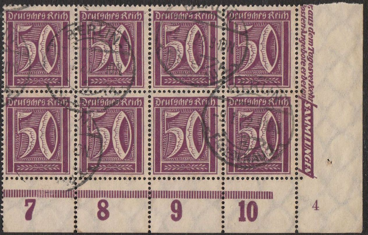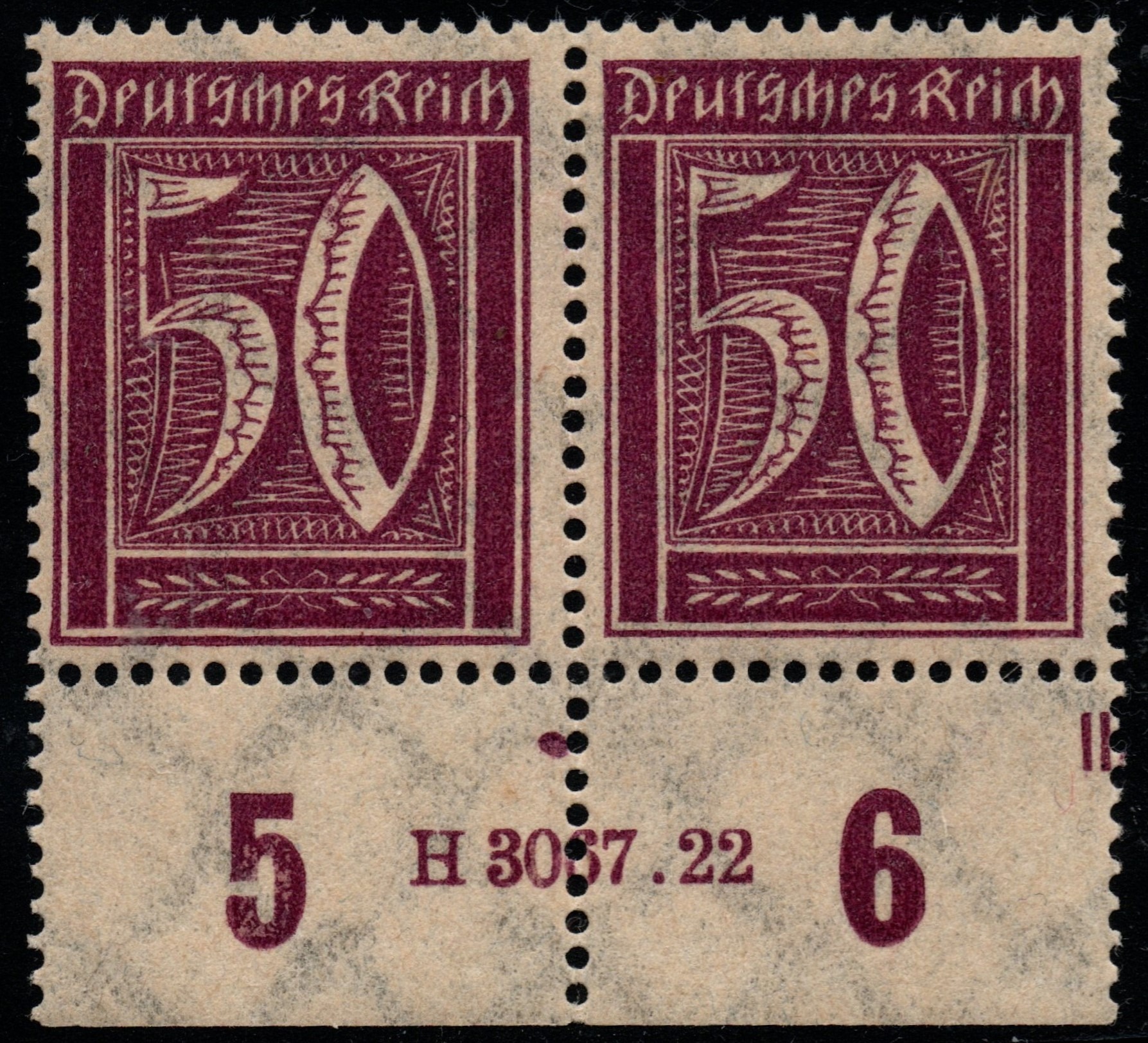 beim 50 Pfg. Wert der Ziffernausgabe Wz.2 Waffeln wird dem Sammler wieder von allem etwas geboten. Darüber hinaus sind die Marken in allen Erhaltungsformen erschwinglich. Auch hier ist kein exaktes Frühdatum bekannt, in allen von mir genutzten Quellen wird der Januar 1922 genannt.