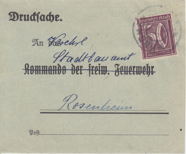 Drucksache bis 20 Gramm von München am 21.9.1922 nach Rosenheim.