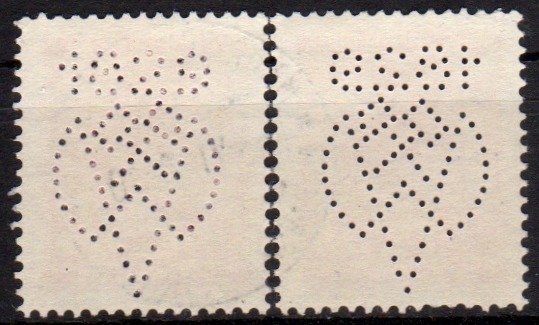 Als ich die tschechische Marke mit Lochung fand , kam mir das perfin bekannt vor. Also kramte ich die Ă–sterreichmarke hervor. Legt man beide ĂĽbereinander sind sie deckungsgleich.
