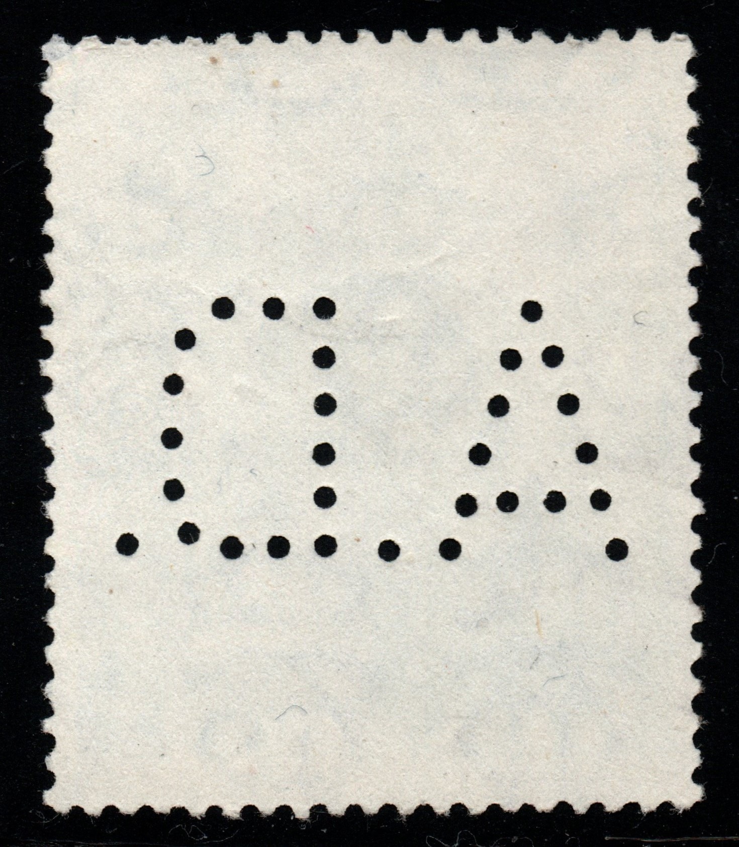 Perfin: A. D. steht fĂĽr Adverul Dimineata, ein Verlagshaus dass u.a. das Rebus Magazin herausbrachte