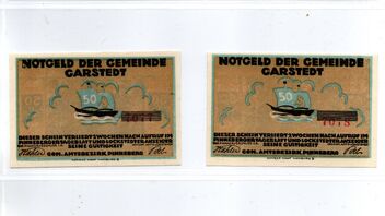 die damals noch eigenständige Gemeinde Egenbüttel im Kreis Pinneberg beteiligte sich im Jahr 1921 zum Wohl der klammen Gemeindekasse mit einer aus sechs Scheinen bestehenden Serienscheinausgabe an der damaligen Notgeldausgabenflut. Die Ausgabe besteht aus je zwei 25, 50 und 75 Pfg. Scheinen. Rückseitig sieht man verschiedene lokale Motive. Drei davon zeigen Bilder rund um den Schießstand aber Schützenvereine und Schützenfeste spielen besonders im südlichen Schleswig Holstein eine große Rolle. Egenbüttel ist seit 1973 ein Teil der Gemeinde Rellingen.