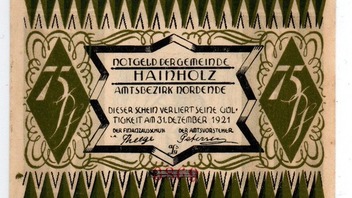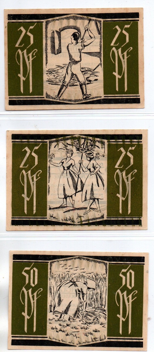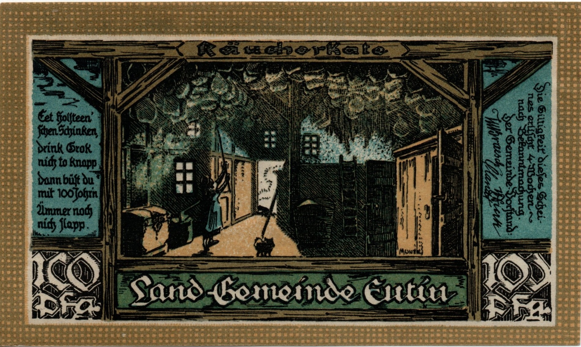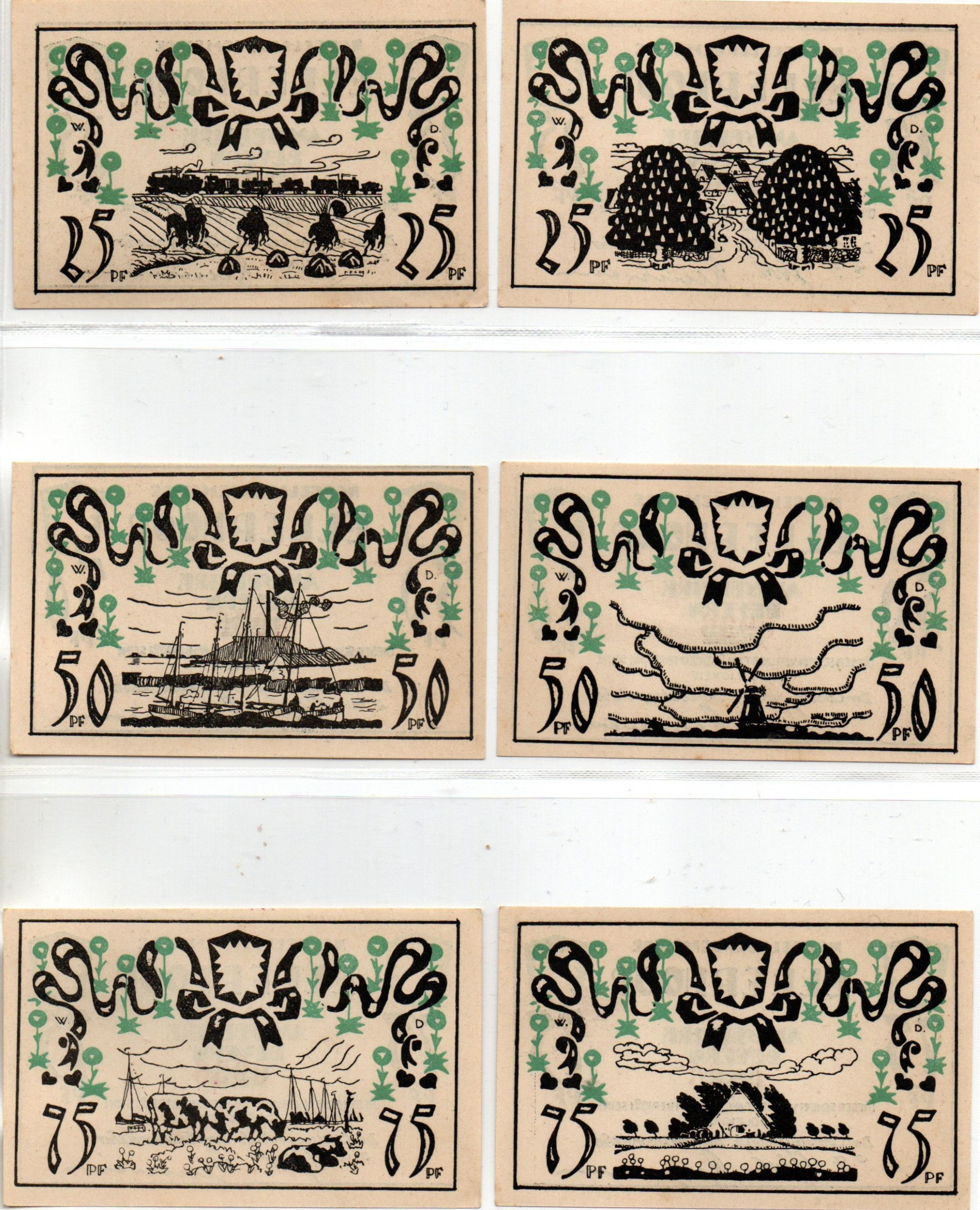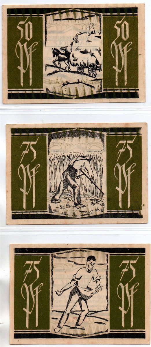 die damals noch eigenständige Gemeinde Egenbüttel im Kreis Pinneberg beteiligte sich im Jahr 1921 zum Wohl der klammen Gemeindekasse mit einer aus sechs Scheinen bestehenden Serienscheinausgabe an der damaligen Notgeldausgabenflut. Die Ausgabe besteht aus je zwei 25, 50 und 75 Pfg. Scheinen. Rückseitig sieht man verschiedene lokale Motive. Drei davon zeigen Bilder rund um den Schießstand aber Schützenvereine und Schützenfeste spielen besonders im südlichen Schleswig Holstein eine große Rolle. Egenbüttel ist seit 1973 ein Teil der Gemeinde Rellingen.