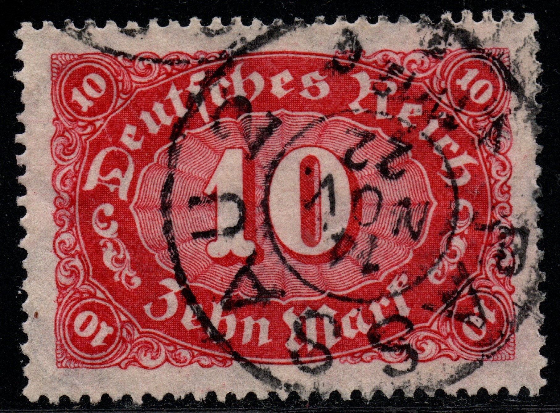 beim 10 Mk. Wert der Ziffer im Queroval-Ausgabe Wz. 2 Waffeln wird auch kein exaktes Frühdatum genannt. Kohl-Handbuch, PHILA-DB und Michel Spezial 2016 schreiben übereinstimmend Marz 1922. Da, wie bei den anderen Kupferdruckmarken, keine HAN angedruckt wurde, lässt sich keine Aussage zur Zahl der Auflagen machen, die Höhe der Gesamtauflage ist nicht bekannt. Die Marken wurden im Plattendruck produziert und in Bogen ausgegeben, https://www.philadb.com/?site=list&catid=&catuid=484&id=2286