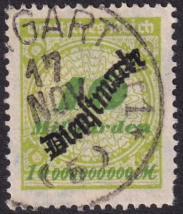Am 17. November 1923 gab es diese Marke mit dem Aufdruck "Dienstmarke" noch nicht.