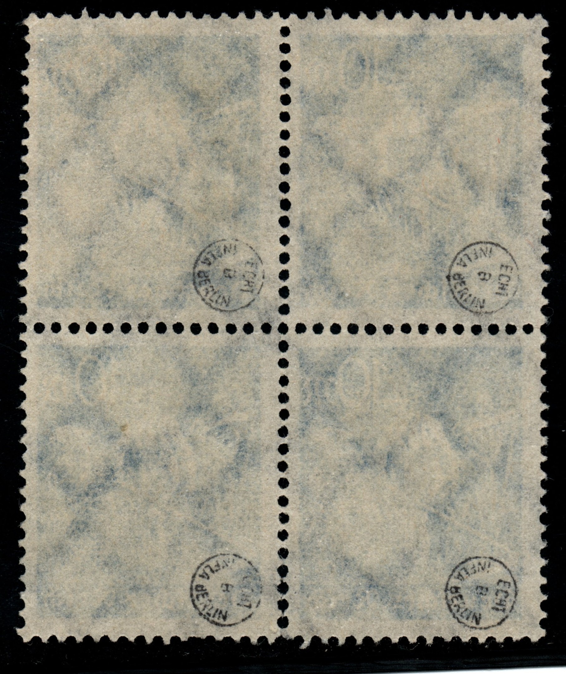 in der Regel war es wohl so, ich denke, es hing auch davon ab um welchen Stempel es sich handelte. Hier drei gestempelte und geprüfte Viererblocks aus meiner Sammlung. beide von mir vor etwa 30 Jahren Hr. Bechthold zum prüfen gegeben.