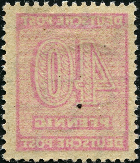 09.11.1945 Freimarke Ziffern 2. Ausgabe, gezähnt K 13 : 12 1/2, Wertstufe 40 Rpf mit Wasserzeichen flach steigende Stufen, Nr. 136 Y wa, postfrischer Wert in a - Farbe "(dunkel)lila (Töne)" auf dünnem, grauweißem Papier vom linken Bogenrand