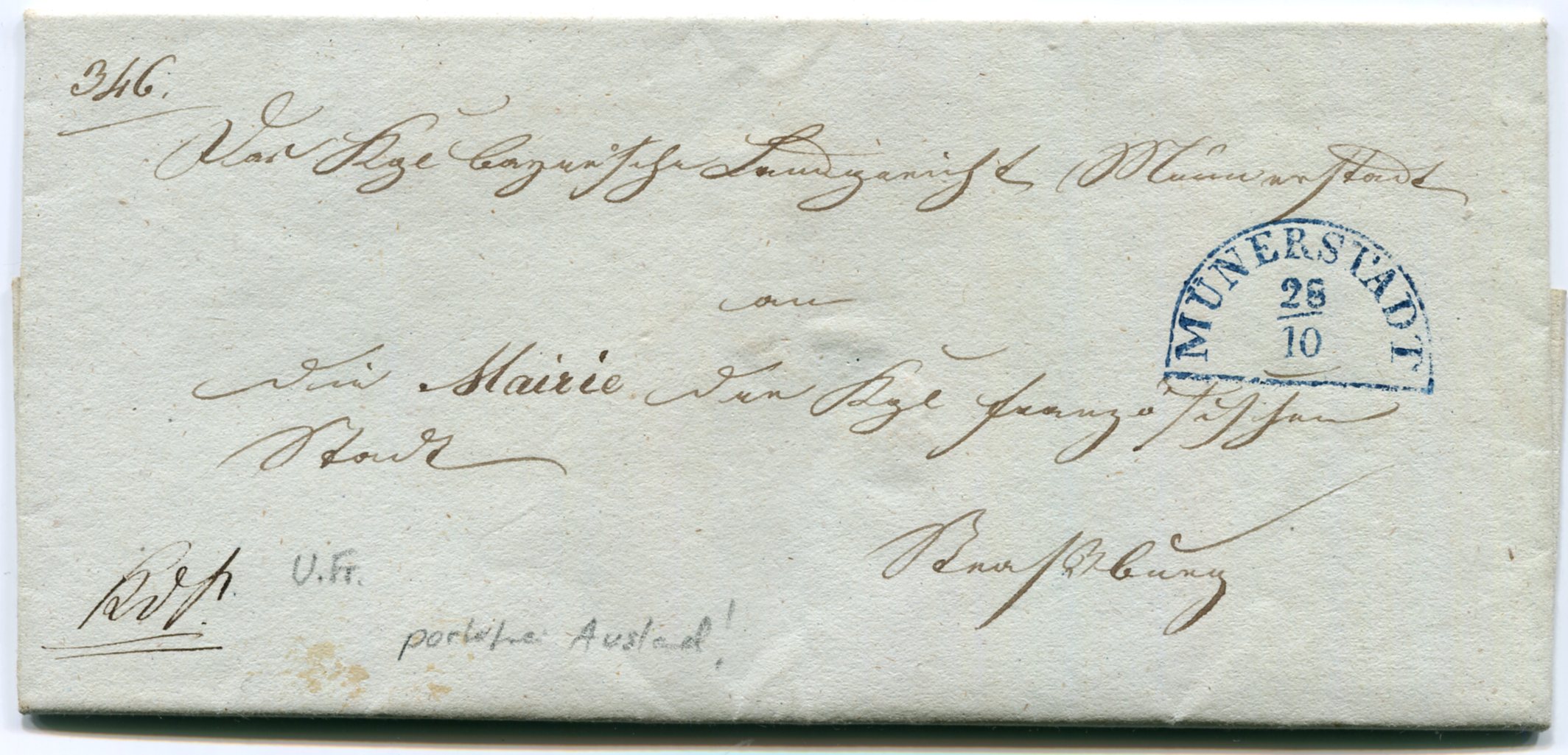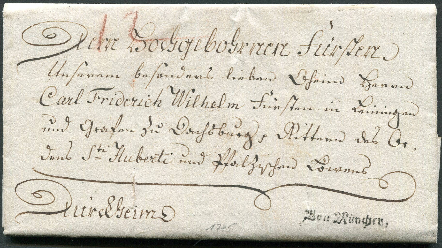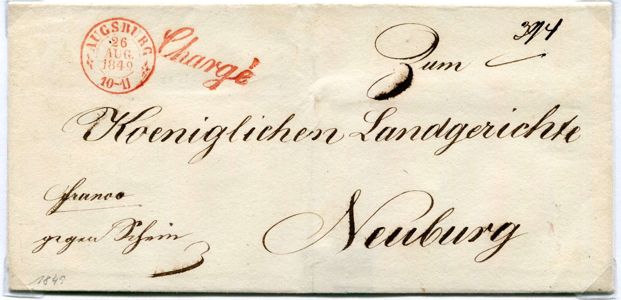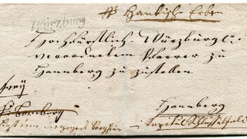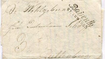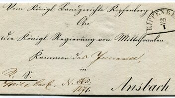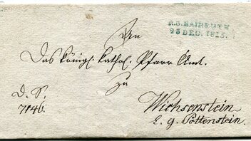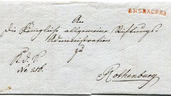 Fahrpost Dienstsache nach Ansbach an das königlich baierische 5te leichte Infantrieregiment Batallion (Major) Buttler. Großbuchstaben