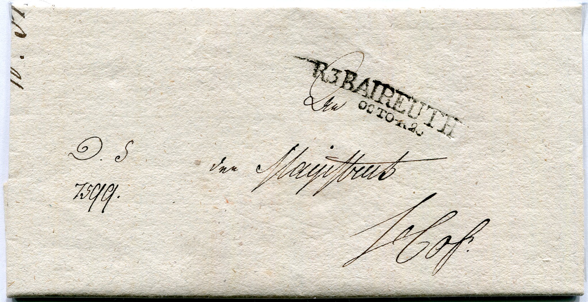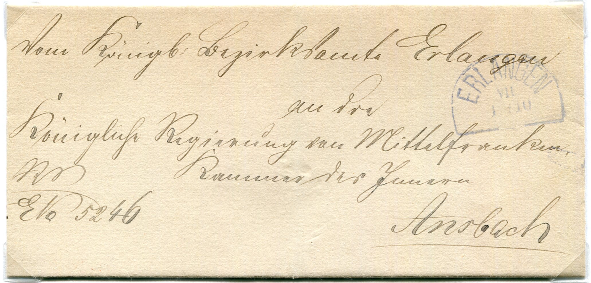 Fahrpost Dienstsache nach Ansbach an das königlich baierische 5te leichte Infantrieregiment Batallion (Major) Buttler. Großbuchstaben