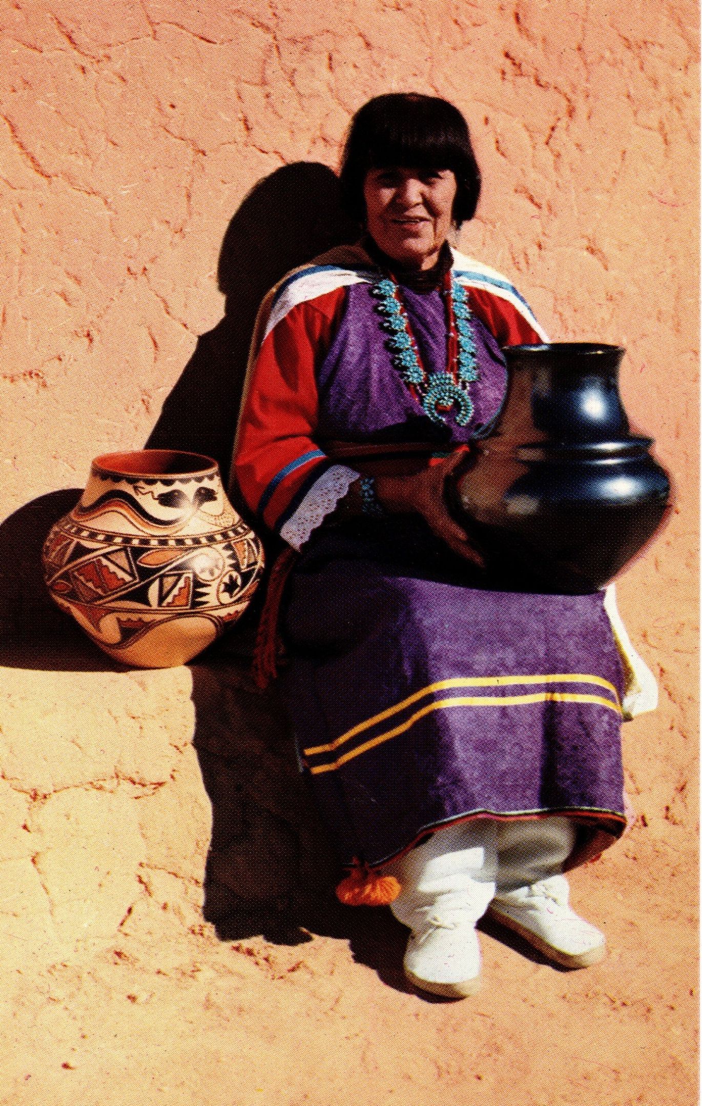 Laut Kartentext: Maria, the Pottery Maker - Famous for her distinctive pottery, Maria's work is exhibited in museums throughout the nation.
